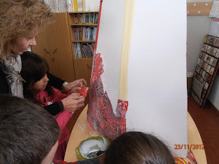As Escolas da cidade de Montijo estão empenhadas na elaboração do Presépio que vai ser exposto na Praça da República . A nossa Escola está a decorar um Rei Mago, só com aproveitamento de revistas em tons de encarnado. Todos os alunos da turma recortaram revistas e colaram pedaços de papel na capa do Rei Mago. Na 6ª feira demos um grande avanço ao trabalho...